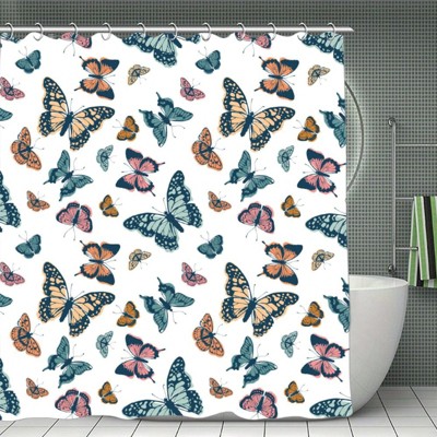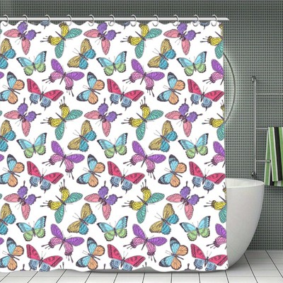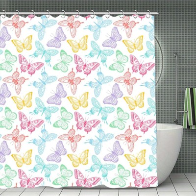 Soscooter White Assorted Color Butterfly Pattern Shower Curtain Bathtub Window Room Divider Polyester Bathroom Decor 70.8x70.8Inch
