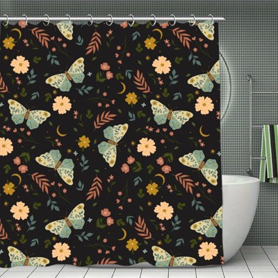 Soscooter Orange Glitter Butterfly Yellow Star Shower Curtain Polyester For Bathtub Shower Divider Light Yellow Bathroom Decor 70.8x70.8Inch