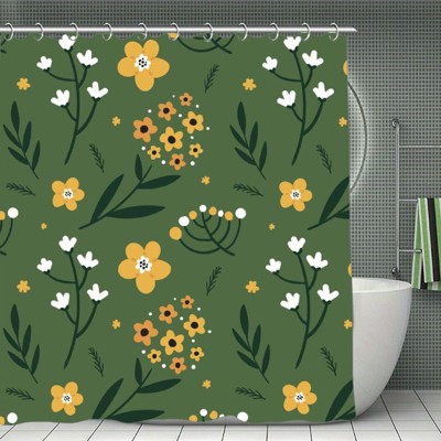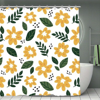 Soscooter Colorful Flower Leaf Shower Curtain Polyester Waterproof Machine Washable Bathtub Shower Room Divider Bathroom Decor Accessory 70.8x70.8Inch