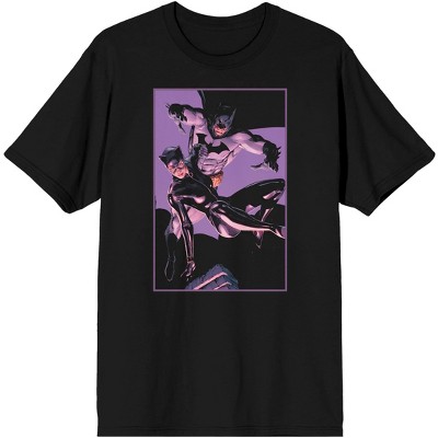 Men's DC Comic Bok Batman & Batgirl Superheroes Black Graphic Tee Shirt