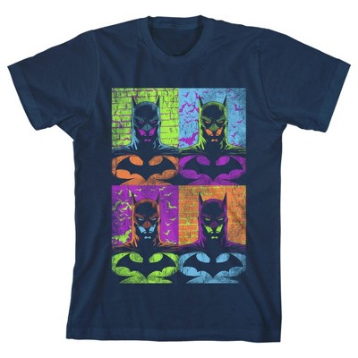 Batman Colorful Images and Logos Youth Navy Blue Graphic Tee