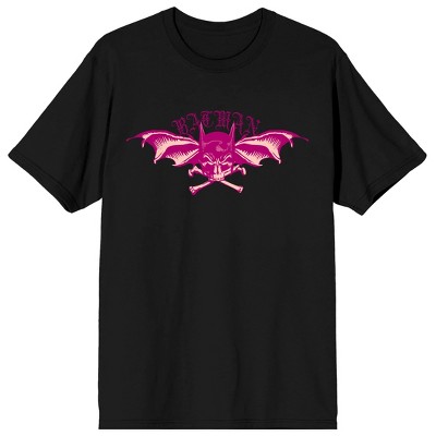 Batman Bat Mask With Three Skulls Men's Black Crew Neck Short Sleeve Tee