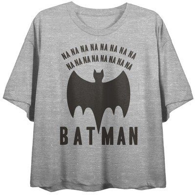 Batman Na Na Na Na Bat Logo Women's Athletic Heather Gray Boyfriend Crop Tee