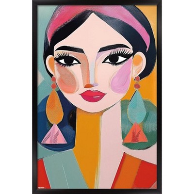Trends International Reinders: Portraits - Vibrant Woman I Framed Wall Poster Prints Black Framed Version 14.725" x 22.375"