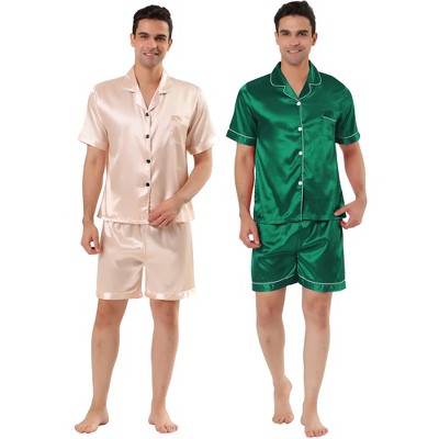 Lars Amadeus Men's Short Sleeves Top and Pants Solid Color Satin Pajama Sets 2 Pack
