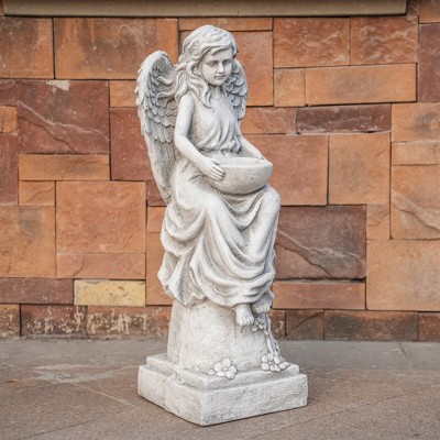 Roman 22" Girl with Watering Can Resin Outdoor Garden Statues Gray