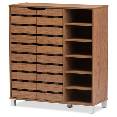 Baxton Studio Shirley Modern and Contemporary 2 Door Shoe Cabinet with Open Shelves Walnut Brown: Entryway Organizer, 24-Pair Storage