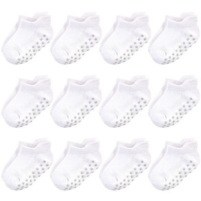 Touched by Nature Baby and Toddler Unisex Organic Cotton Socks with Non-Skid Gripper for Fall Resistance, White No-Show