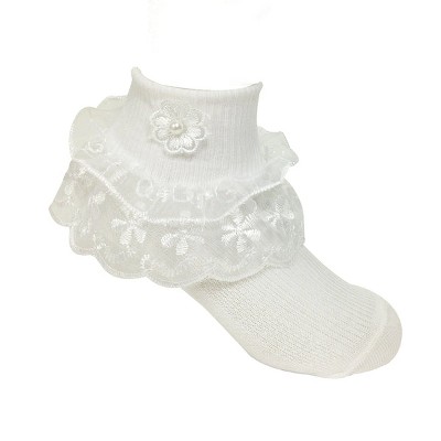 MyKids-USA Baby Girls Frilled-Edges Breathable Mid-Calf Socks 2 Pairs