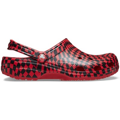 Crocs Adult Classic Warped Checker Clogs, Black/Varsity Red, W6/M4