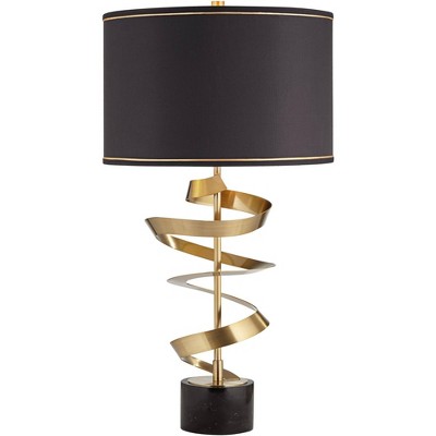 Possini Euro Design Twist Modern Table Lamp 31" Tall Sculptural Brass Marble with Dimmer Black Drum Shade Bedroom Living Room Nightstand Bedside House