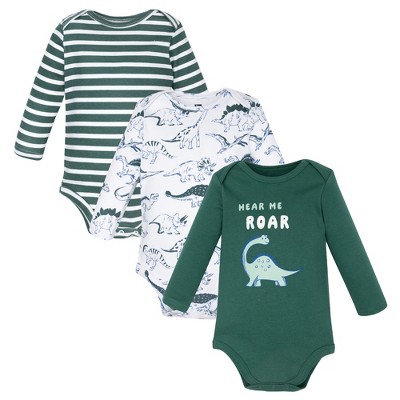 Hudson Baby Infant Boys Cotton Long-Sleeve Bodysuits 3-Pack, Hear Me Roar Dino