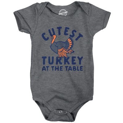Cutest Turkey At The Table Baby Bodysuit Funny Cute Thanksgiving Dinner Jumper for Infants - Crazy Dog Baby Bodysuit for Thanksgiving