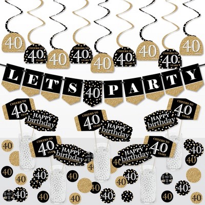 Big Dot of Happiness Adult 40th Birthday - Gold - Birthday Party Supplies Decoration Kit - Decor Galore Party Pack - 51 Pieces