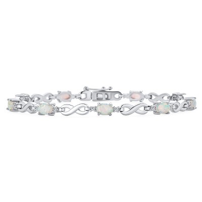 Bling Jewelry White Created Opal & CZ Forever Infinity Tennis Bracelet .925 Sterling Silver 7.5 Inch