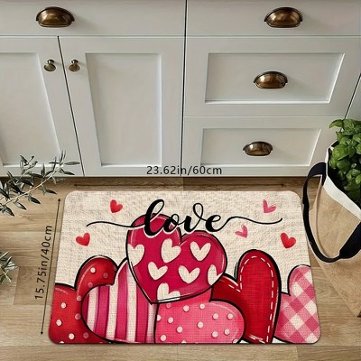 Lomsoe 2pcs Heart-Shaped Door Mat - Red & Checkered Design with Hearts, Perfect for Kitchen, Bathroom, Dining Room, Bedroom.