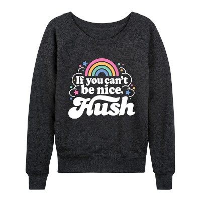 Women's - Instant Message - If You Can't Be Nice Hush Lightweight French Terry Wide Neck Long Sleeve Graphic Shirt