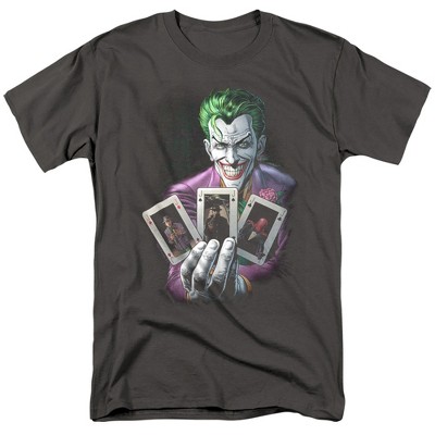 Batman Joker With Playing Cards Adult Black Crew Neck Short Sleeve T-shirt