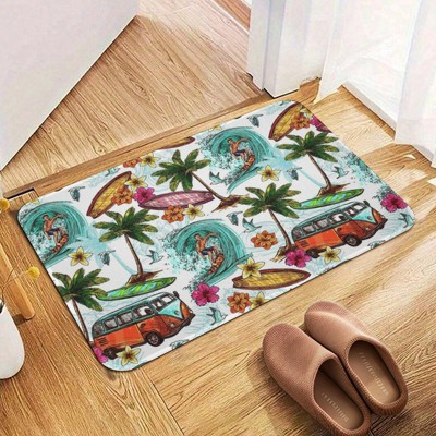 Beach Vacation Surf Bathroom Rugs Winter Bath Mat Absorbent Non Slip Bathroom Mat Christmas Soft Floor Carpet 16x20 Inches