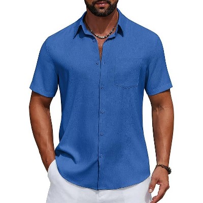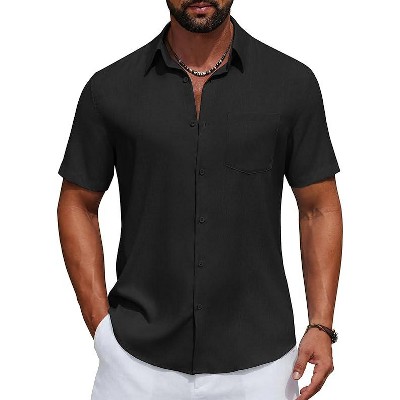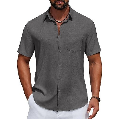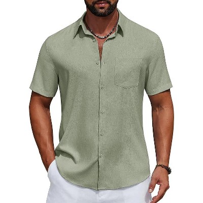 COOFANDY Mens Linen Casual Short Sleeve Shirt Button Down Summer Beach Shirts