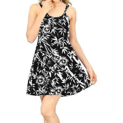 HAPPY BAY Women's Summer Holiday Beachwear Mini Bathing Suit Plus Size Fall Swimsuit Beach Dress Cover Ups 1X-2X Black Floral