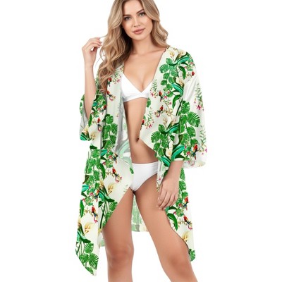 LA LEELA Women's Open Front Summer Vacation Beachwear Short Bathing Suit Cardigan Holiday Swimwear Duster Beach Swim