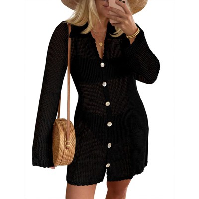 Imily Bela Womens Long Sleeve Crochet Swimsuit Coverup Vacation Outfit
