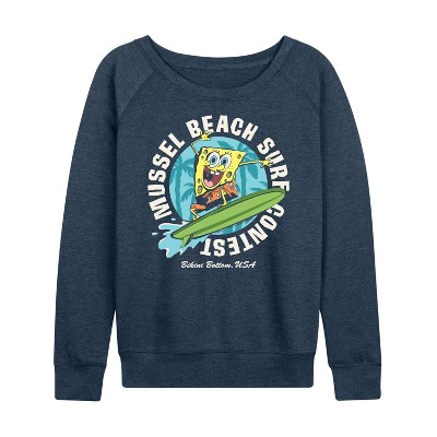 Women's - SpongeBob SquarePants - Mussel Beach Lightweight French Terry Wide Neck Long Sleeve Graphic Shirt