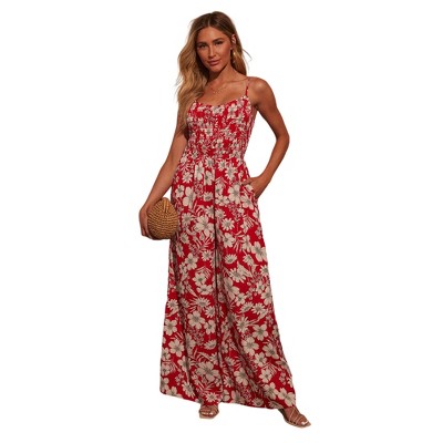 INSPIRE CHIC Women's Floral Smocked Square Neck Ruffle Beach Boho Maxi Dress