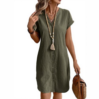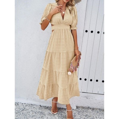 Coolmee Women's Summer Dresses Casual Short Sleeve V Neck Dresses Flowy A line Tiered Boho Beach Midi Dress
