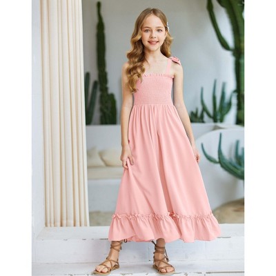 Arshiner Girls Summer Dress Boho Beach Casual Smocked Maxi Dresses 6-13 Years