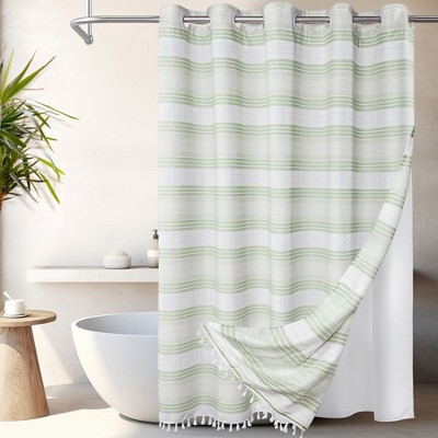 - blue green shower curtain