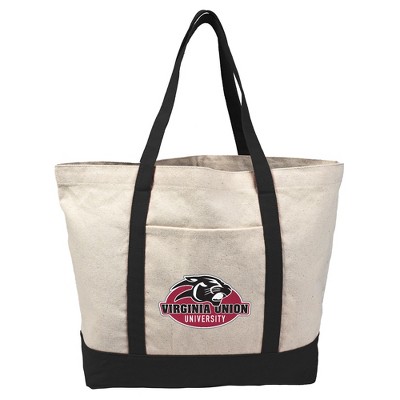 Virginia Union University Primary Logo Canvas Tote Bag With External Pocket, Reusable Shoulder Bag for Shopping, School, Beach
