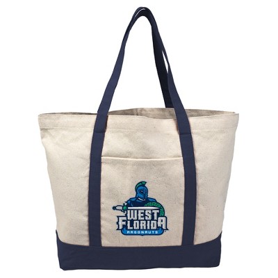 University of West Florida Primary Logo Canvas Tote Bag With External Pocket, Reusable Shoulder Bag for Shopping, School, Beach