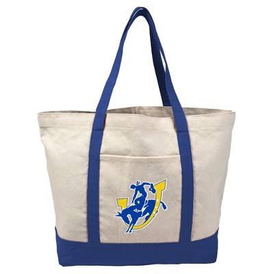 Quinnipiac University Large Logo Canvas Tote Bag With External Pocket, Reusable Shoulder Bag for Shopping, School, Beach