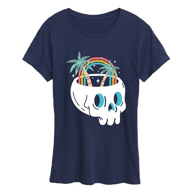 Women's - Instant Message - Beach Skull Bun Short Sleeve Graphic T-Shirt