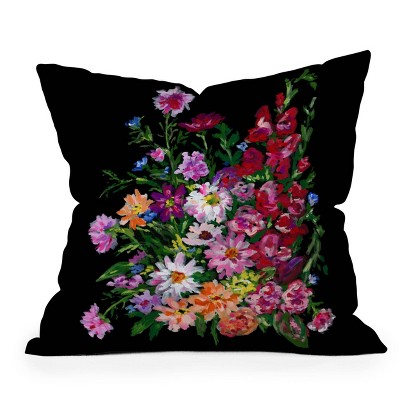 16"x16" Laura Jane Kirton Dahlias and Gladiolus Bouquet Square Throw Pillow Black - Deny Designs
