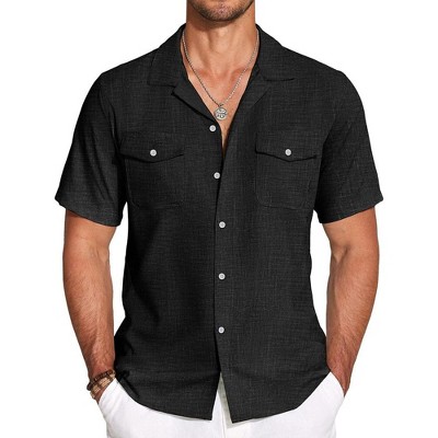 COOFANDY Men's Linen Short Sleeve Button Down Casual Cuban Collar Summer Beach Shirts Vacation Essentials
