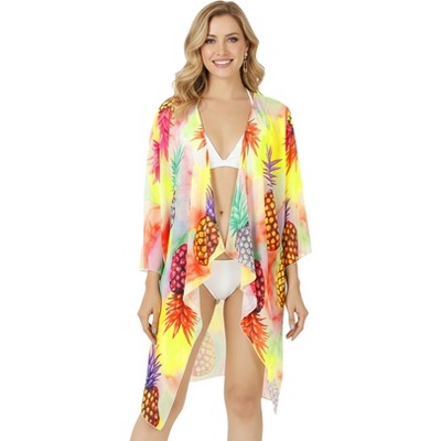 HAPPY BAY Womens Summer Beach Bikini Cardigan Swimsuit Beachwear Duster L-XL Multi, Pineapple