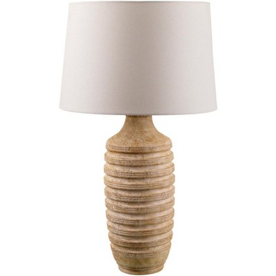 Table Lamp Notched Ceramic Base White and Grey Modern Lighting - 26 " by Melrose