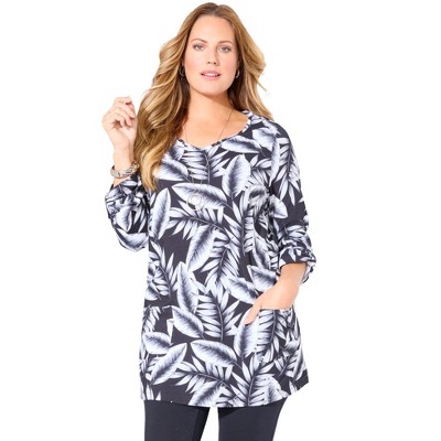 Roaman's Plus Size Soft Knit Print Tunic With Notch Neckline