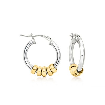 Ross-Simons Italian Sterling Silver Hoop Earrings With 18kt Gold Over Sterling Removable Beads