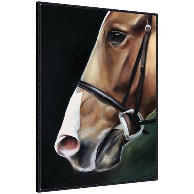 Kate and Laurel Chestnut Horse by Mary Sparrow Framed Canvas Wall Art Print, 32x42, Beaded Black