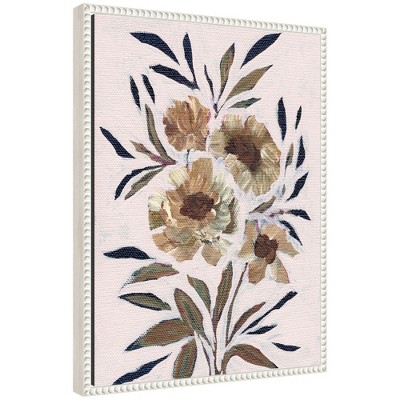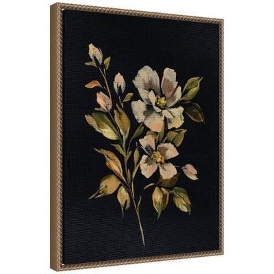 Kate and Laurel Moody Floral 1 Framed Canvas by Annie Quigley, 18x24, Beaded Dark Gold