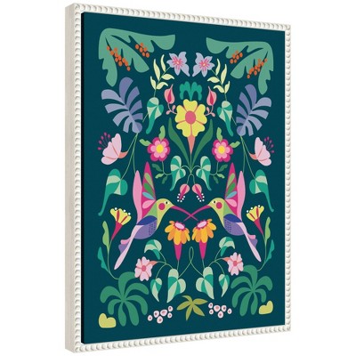 Kate and Laurel Green Foliage Framed Canvas by Nikita Jariwala, 28x38, Beaded White