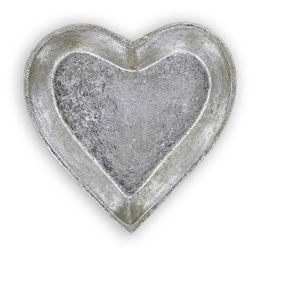 HomeRoots 7" Silver Heart Cast Iron Handmade Vanity Tray