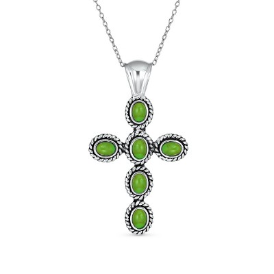Bling Jewelry South Western Style Multi Color Stones Bezel Set Cross Pendant Necklace Sterling Silver