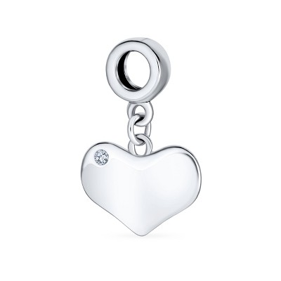 Bling Jewelry Blue Crystal Accent Dangle Heart Shape Bead Charm Sterling Silver Fits European Bracelet