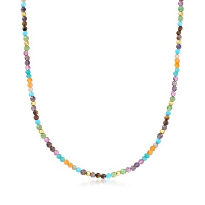 Ross-Simons Multi-Gemstone Bead Necklace in 18kt Gold Over Sterling Size 18