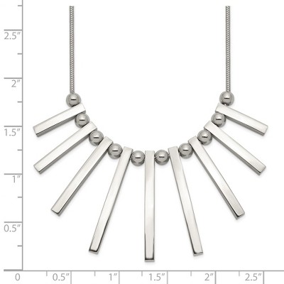 Chisel Stainless Steel Polished Bars and Beads Drop Necklace 15.75" Snake Chain with 1" Exte